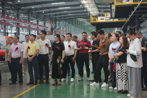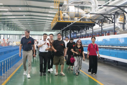贝利泰陶瓷董事长邓世杰(左2)带领嘉宾参观窑线